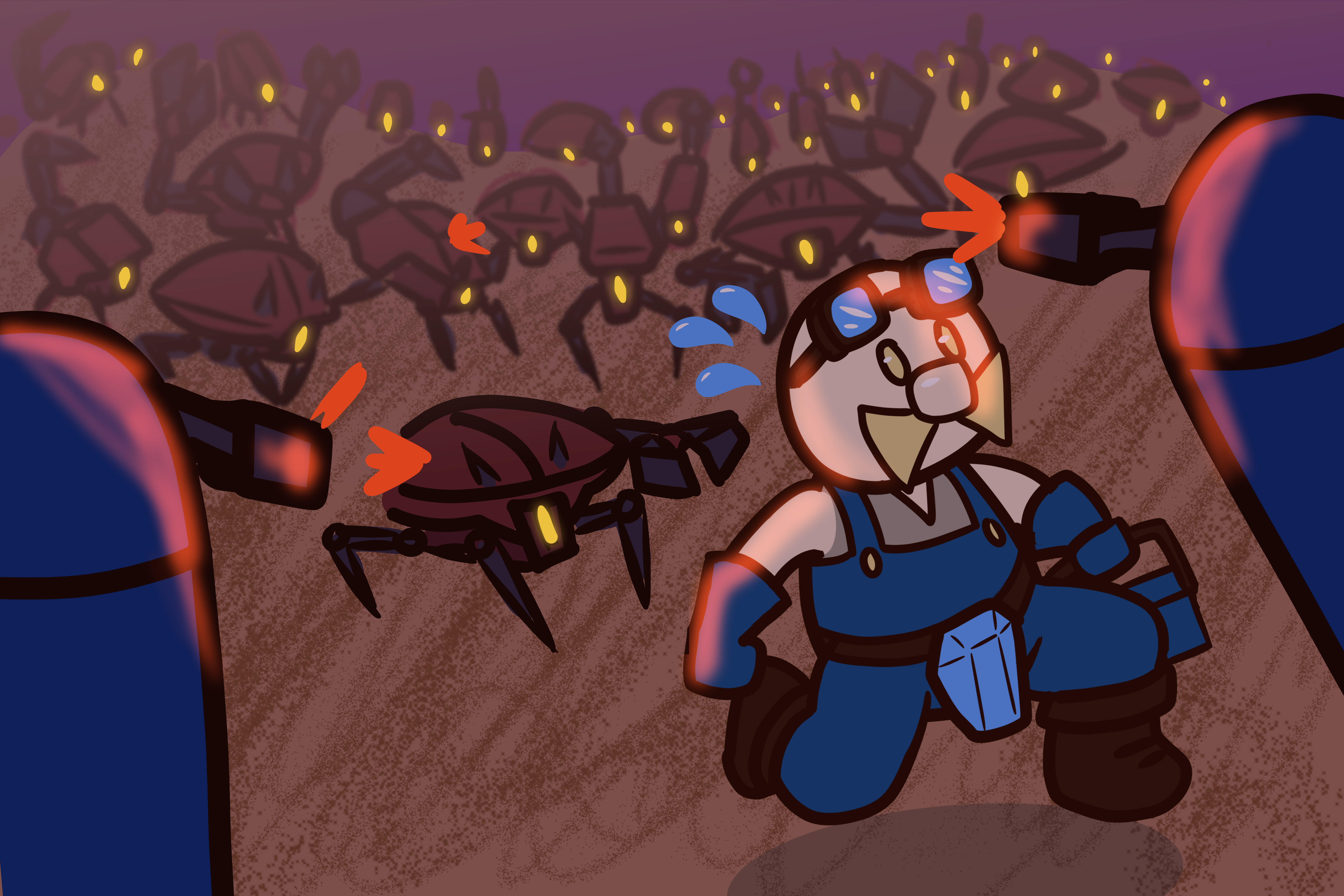 I was responsible for creating the game’s 2D assets and 2D animations, alongside concepting ideas and providing suggestions on the game’s balance. More specifically, I created the player character’s sprites, and the sprites which represented the two enemy types in the game. I created the concept for them, and let the team vote on the design of the player character.